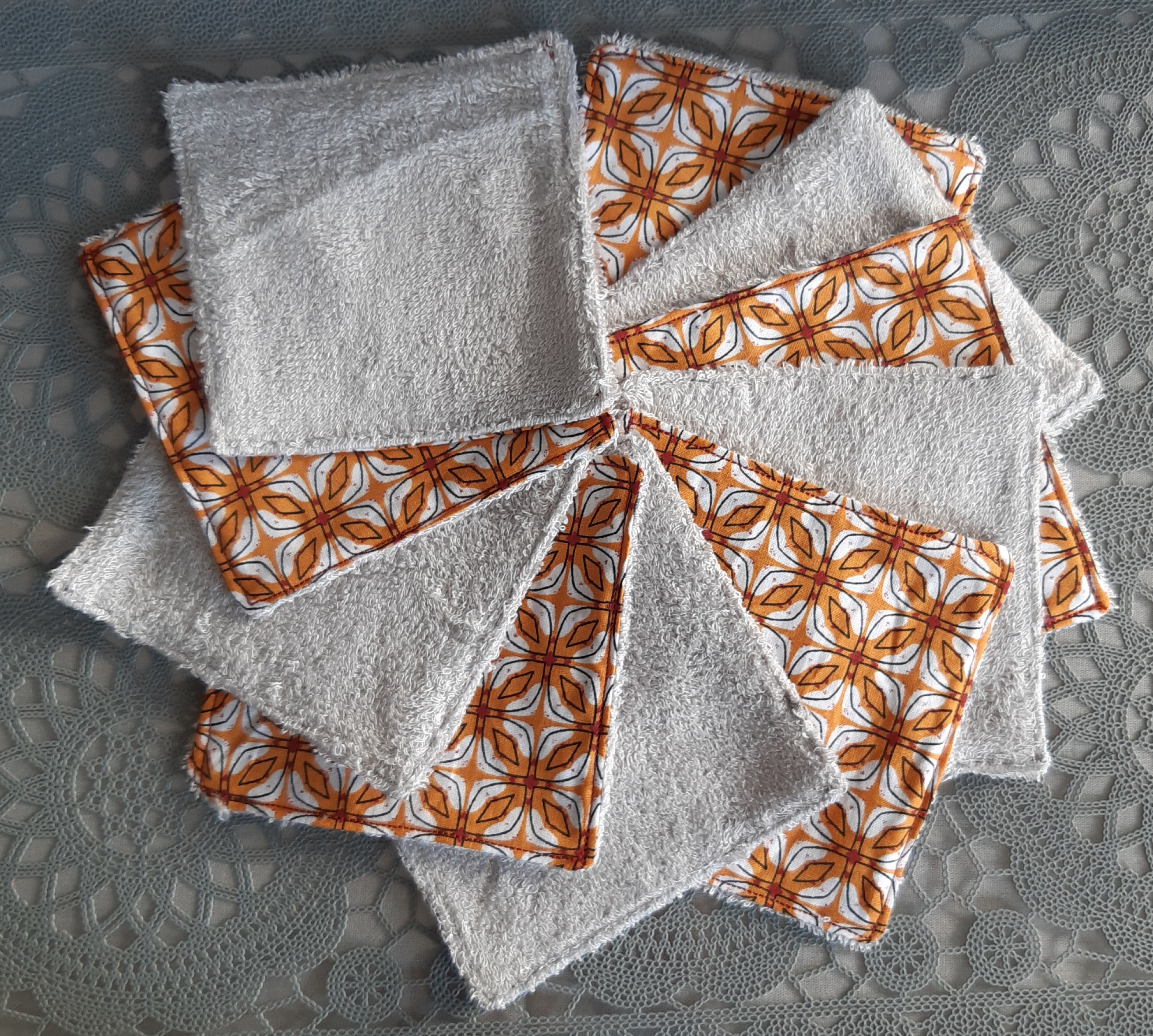 Lot de 10 lingettes 11x11 cm en éponge bambou 100 % naturelle, toutes douce. Labellisées oeko tex pour le respect de la peau, la santé et l'environnement.