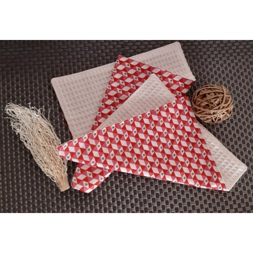 Serviette de table en coton oeko tex ( label écologique, garantissant l'absence de substances nocives pour la santé, la peau et l'environnement), doublé en nid d'abeille.
